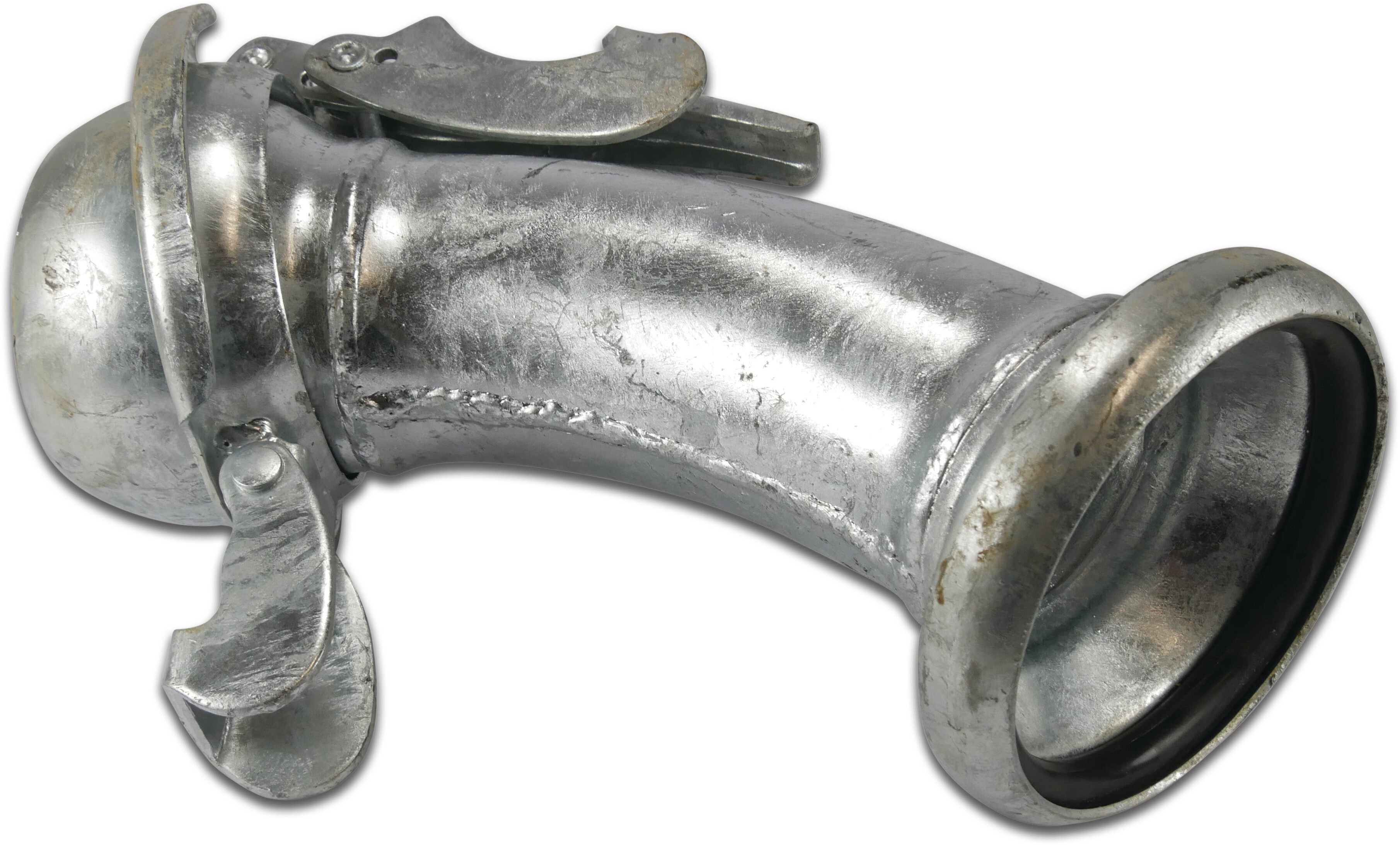 De Bocht 45°, type Bauer S12. De koppeling heeft een V-deel Bauer x M-deel Bauer verbinding. Met een gegalvaniseerde oppervlaktebehandeling. Verkrijgbaar in verschillende maten.